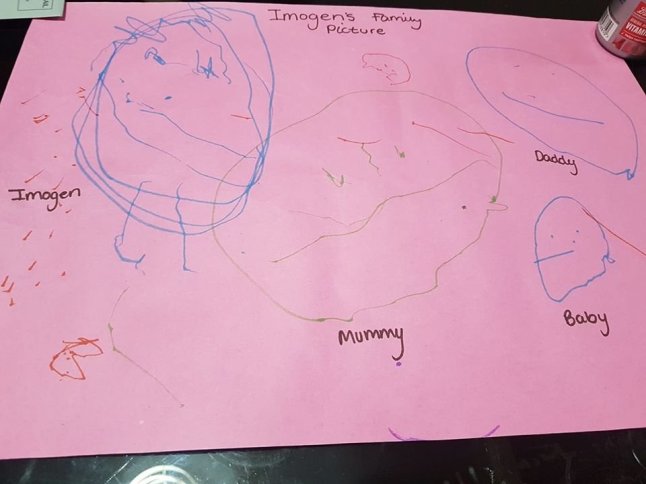 Squidge came home from nursery the other day with the first picture she has ever drawn of our family. I almost cried with love and pride.