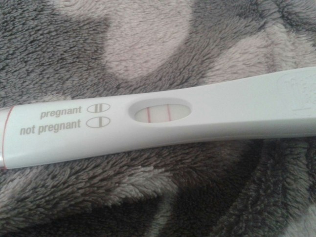 I ridiculously have never managed to pee on a pregnancy test. I’ve always had to pee in a cup and dip the test to be sure of a result. So I had to steal a cup from the staff cupboard, lock myself in the disabled loo before someone realised I wasn’t at my desk yet and do the deed.