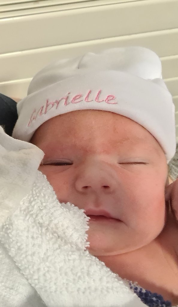 Gabby was born on one of the hottest days of the year, with huge, loud storms raging outside the hospital’s immovable windows as the heat tried to break. I can still remember the sweat pouring down my back and how relieved I was at my £5 panic buy of a handheld fan. It remains to this day, the best £5 I have ever spent. I think it might actually have saved both our lives.